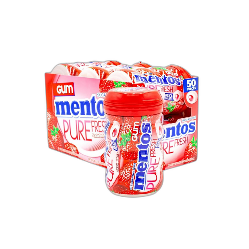 Mentos, Pure Fresh, Sugar Free, Chewing Gum, Strawberry 50pieces 6ct