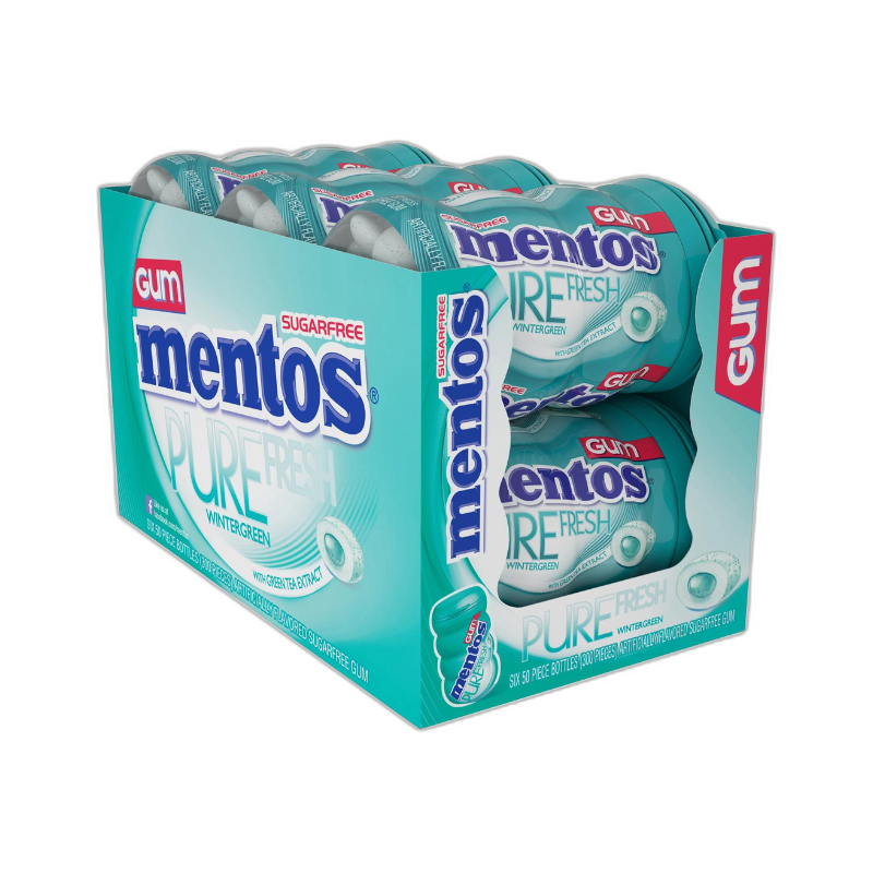 Mentos Pure White Sugar Free Chewing Gum, Wintergreen 50pieces 6ct